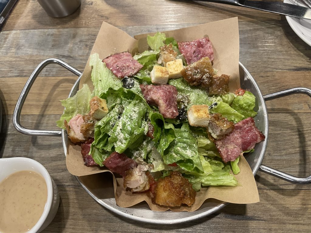 Lastly, we had a bacon chicken salad. It came with a sesame-based dressing, which complemented the dish perfectly.